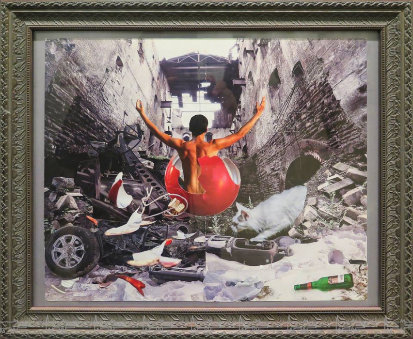 Сущность коллажа как метода – изменение контекста. Персонажи рекламы , репортажного фото или герои известной картины художника прошлой эпохи должны оказаться в новой ситуации. Переосмысление контекста становится главной задачей коллажиста - не важно, юмор или философию он вкладывает в свой замысел , этот новый сюжет должен получиться интереснее предыдущего. Выставка состоит из классический коллажей, в которых ничего не дорисовано от руки , нет фотографий сделанных специально для коллажа, нет распечаток из Интернета. Тем ценнее органичное композиционное целое, когда в нём герои не только взаимодействуют , находясь в естественных пропорциях по законам перспективы, но и не противоречат друг другу по цветам одежды и фона.