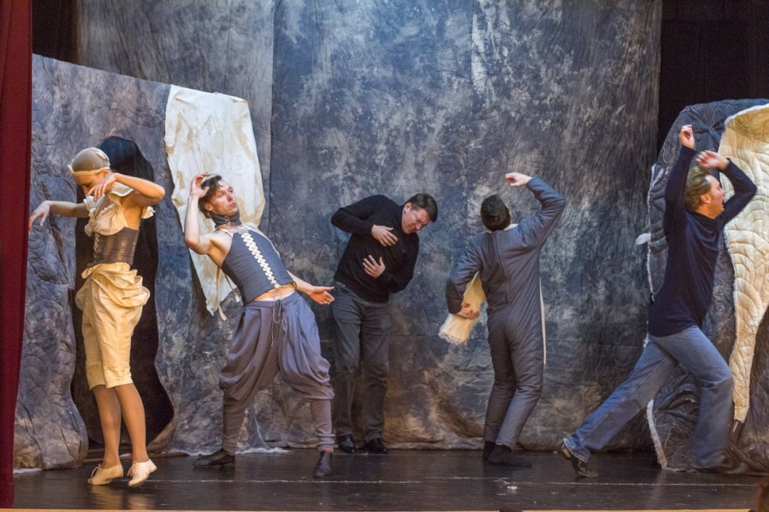 Два вечера почти площадного, яркого и грубоватого зрелища, смягченного “грустной улыбкой разума”. Человек приходит в этот мир, начинает говорить, повторяет кем - то придуманные слова, в нем прорастают кем - то сформулированные мысли, он надевает чьи - то личины.