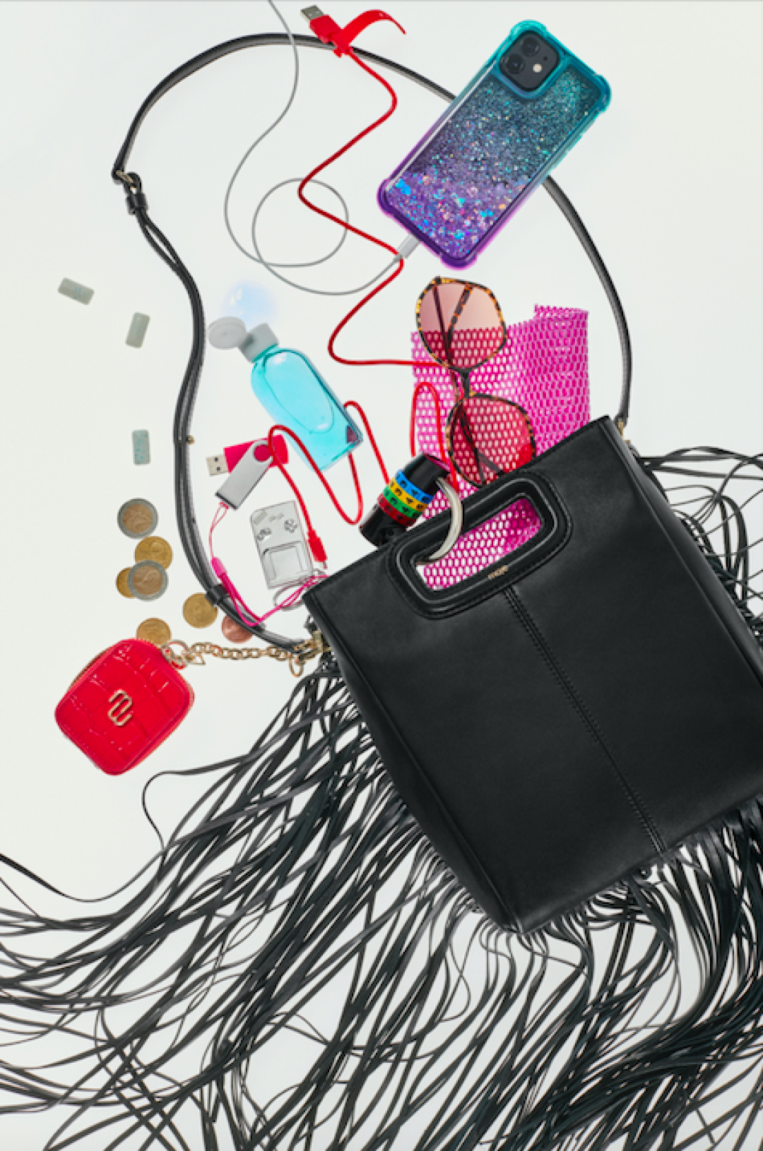 Сумка Maje под названием «М» празднует свое пятилетие. За это время она выходила в разных дизайнах и размерах: от вместительного клатча до малышки-брелка. Но главная деталь остается неизменной — бахрома, которая стала визуальным кодом модели.
