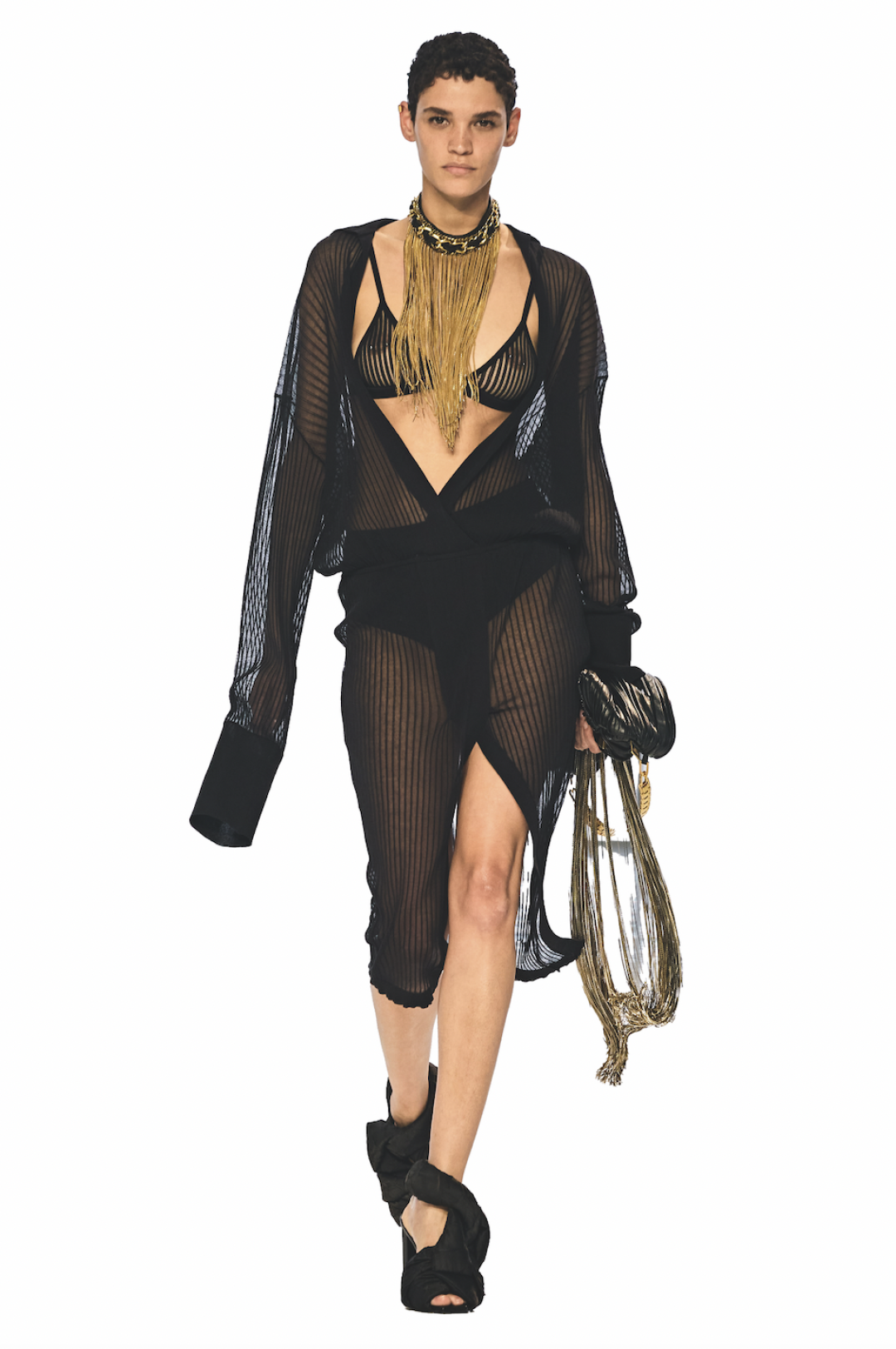 Креативный директор Balmain Оливье Рустен назначил обнаженность главным приемом летней коллекции. Причем не только женскую, но и мужскую. Максимум разрезов и прозрачности при минимуме ткани, виртуозно скроенной, чтобы подчеркнуть тело — фестиваль Burning Man у нас дома.