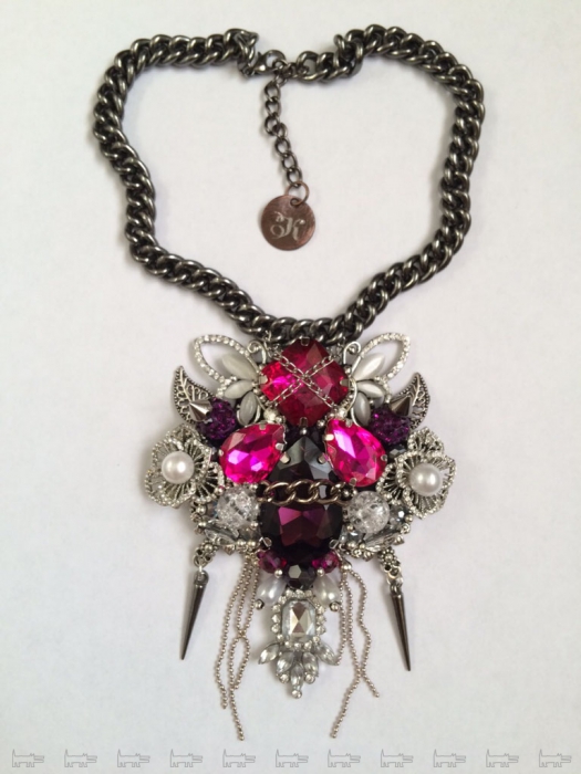 При всей внешней изящности наивом здесь не пахнет – бутон из страз и жемчужин с порхающими вокруг бабочками надежно защищен от вторжения «колючками» в виде металлических шипов и цепочек.