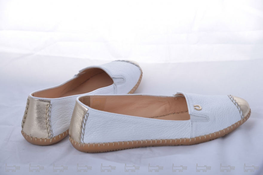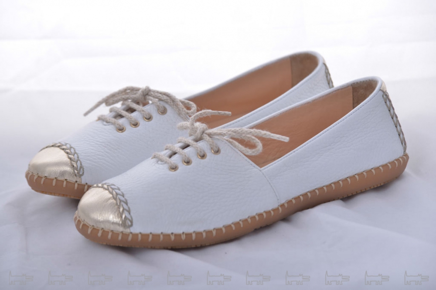 Абсолютный хит – белоснежные эспадрильи со шнуровкой из льняных нитей и вставками из металлизированной «позолоченной» кожи имеют все основания блистать на светских мероприятиях.