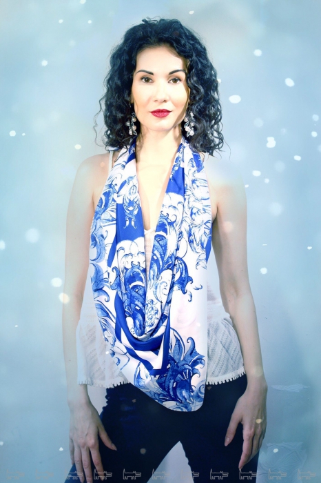 К Новому Году Модный дом Nina Ruchkina и проект РУССКИЕ В МОДЕ предлагает антикризисную терапию настоящей русской роскошью - авторскими модными платками в стиле ГЖЕЛЬ из коллекции «Русская зима».