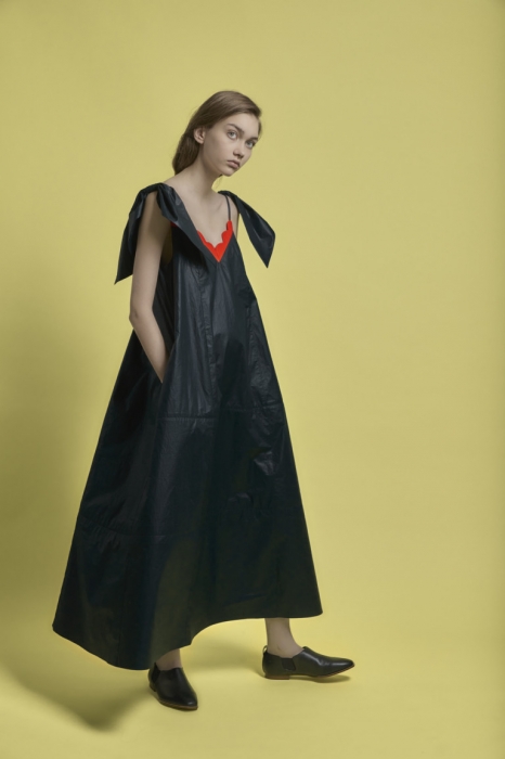 Дизайнер Вика Газинская выпустила коллекцию на следующую осень — с теплыми контрастными свитерами, непромокаемыми тренчами, бесформенными кожаными куртками и наглухо застегнутыми меховыми пальто. Среди однотонных черно-красно-голубых вещей также есть футболки с принтами и двухцветные «платья-пирожные» — на этот раз Вика добавила в мудборд сказки Льюиса Кэрролла и образы антагонистов Алисы в Стране чудес и Червонной Королевы.