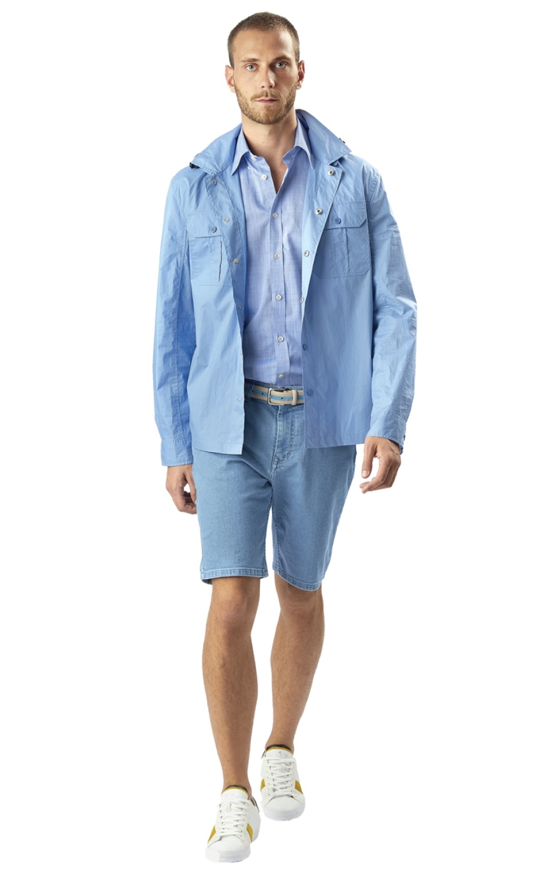 Только неаполитанцы могут смешать английскую клетку, тропические принты и технику петчворк — и не выглядеть нелепо. Еще бы! Вековые сарториальные традиции мужской одежды — серьезная база. Мелодичной основой коллекции стали все оттенки синего цвета: сорочки, летние куртки и хлопковые брюки — это своеобразный оммаж песне про грусть в сумерках, которую пятьдесят лет назад для Челентано написал Паоло Конте. Меланхолию развеивают яркие всполохи оранжевых пуховиков-безрукавок и буйный цветочный принт, украшенные трогательным логотипом марки — графичным изображением таксы. harmontblaine.com
