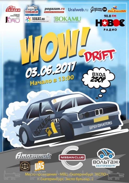 3 июня на площадке МВЦ "Екатеринбург ЭКСПО" прогремит самое яркое событие этого лета: одноэтапное соревнование по дрифту! Смелый, дерзкий, дымный, удивительный "WOW! Drift"