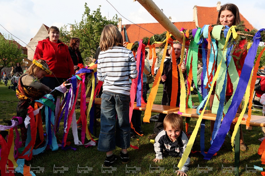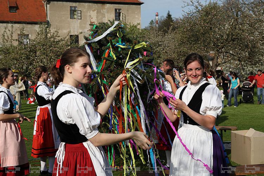 Утром 1 мая люди украшают майское дерево – символ плодородия, а также победы сил света и торжество жизни над смертью. На вершину водружают венок из цветных бумажных лент. В чешских деревнях до сих пор существует традиция красть венок с майского дерева соседей. Потеря венка – большой позор для всей деревни, поэтому у дерева должны постоянно дежурить юноши. Также есть традиция 1 мая делать дорожку из песка или опилок, соединяющую дома влюбленных. Мальчики с майскими венками на палках обходят дома и девочки дают им подарки. Затем все идут на деревенскую площадь или в пивные, где устраивают танцы. Также в этот праздник принято целоваться под деревьями, лучше всего под яблоней, считается, если девушку 1 мая никто не поцелует, то весь год она будет иссыхать.