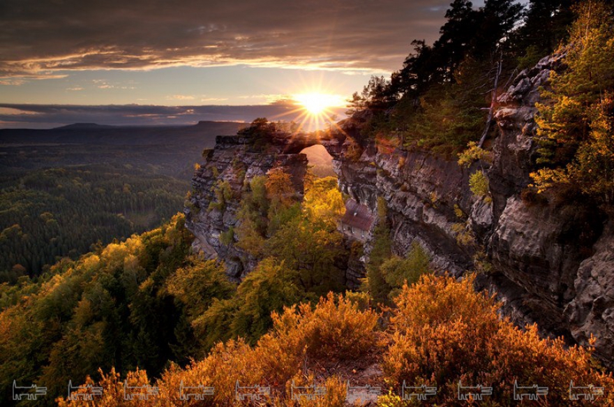 Национальный парк «Чешская Швейцария» расположен на границе с Германией, рядом со своим близнецом – «Саксонской Швейцарией». Это самый молодой из четырех народных парков Чехии. Миллионы лет тому назад здесь простиралось море. Схлынув, оно оставило после себя уникальный край высоких песчаниковых утесов и башен, скальных арок, оврагов и гор с усеченными вершинами.