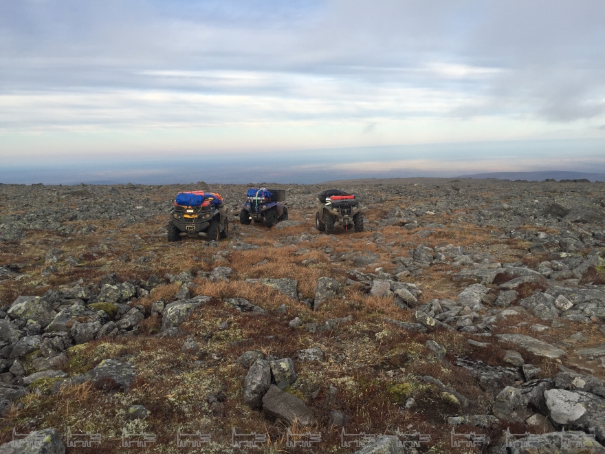 Станислав Павлов: Все реки на квадрациклах проходимы без проблем! Добравшись до отворота на Чистоп, решили начать с него. Как оказалось позже – совершенно зря. Дорога на Чистоп утомительна. Как для людей, так и для техники. Сплошные каменные россыпи на склонах – курумник, острый и большой. И вот, через несколько часов мы были у подножия, в пределах видимости разрушенной радиолокационной станции. Последние несколько десятков метров прошли пешком, пожалев квадроциклы. Видимость была потрясающая – ни тучки, ни ветерка!