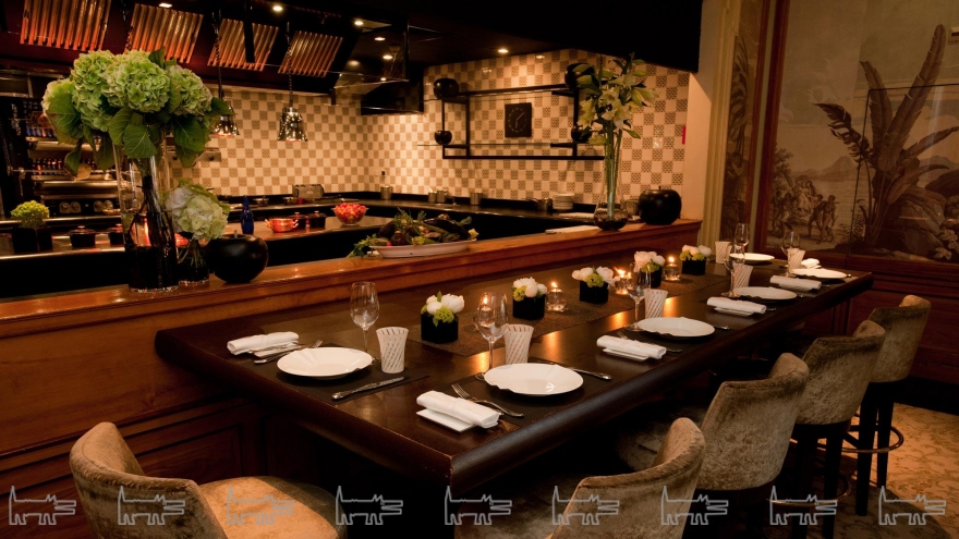 Процесс готовки – зрелище более захватывающее, чем цирковое шоу: красные фонари, повара в черном, вспыхивающее пламя теппаньяки и пляшущие по стенам тени заставляют гостей застыть в оцепенении, не донеся до рта вилку с фаршированными каштанами или равиолями с лангустином. Результат этого кулинарного театра достоин самых высоких похвал, недаром ресторан отмечен двумя мишленовскими звездами.
