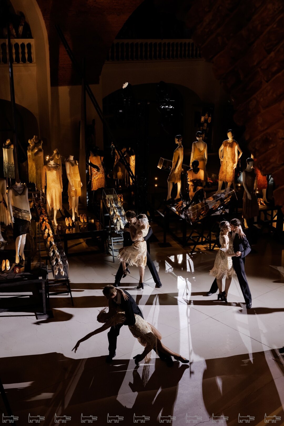 После ужина в пространстве выставки «Упакованные грезы» для гостей состоялся балетный мини-спектакль с участием артистов Мариинского театра и танцоров международного класса, которые исполнили танго, фокстрот и чарльстон — дань бурным ритмам двадцатых. Финальная нота гала - традиционный коктейль в Манеже Малого Эрмитажа продолжил тему выступлением джазовых музыкантов.