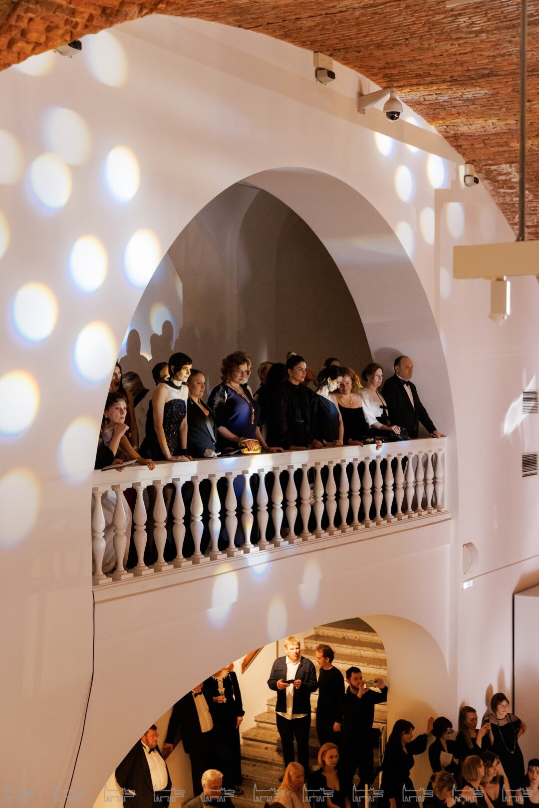 Вечер открыл променад по галереям Нового Эрмитажа и Зимнего дворца, где гостям был представлен перформанс «Блудный сын» — современное прочтение поэзии Николая Гумилёва молодыми актёрами. Завершилась прогулка в Николаевском зале посещением вернисажа «К барьеру! Поединки и дуэли от Ахилла до Лифаря» — экспозиции, посвящённой искусству поединка, эволюции дуэльного оружия (как холодного, так и огнестрельного) и личностям знаменитых дуэлянтов.
