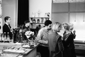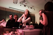 На открытии собрались близкие друзья тандема и начинающие поклонники марки. И естественно, тут же было опробовано интерьерное ноу-хау: витрина, превращающаяся в элегантный диджейский пульт, за которым по-семейному отыграл муж Иры, DJ Ego R.