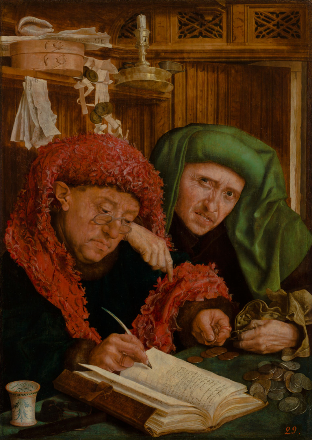 Фламандец Маринус ван Роймерсвале знаменит портретами банкиров, ростовщиков и сборщиков податей — сюжет популярный в 16 веке. Считается, что первым к теме изображения сборщиков податей обратился Ян ван Эйк, а затем Квентин Массейс, который считается учителем Роймерсвале. На наш взгляд, картина так и просится стать мемом про уплату налогов и хорошо бы смотрелась в рекламе Федеральной налоговой службы. Иронично, что полотно, только что прошедшее через руки эрмитажных реставраторов, покажут во дворце Александра Даниловича Меньшикова — известного казнокрада.