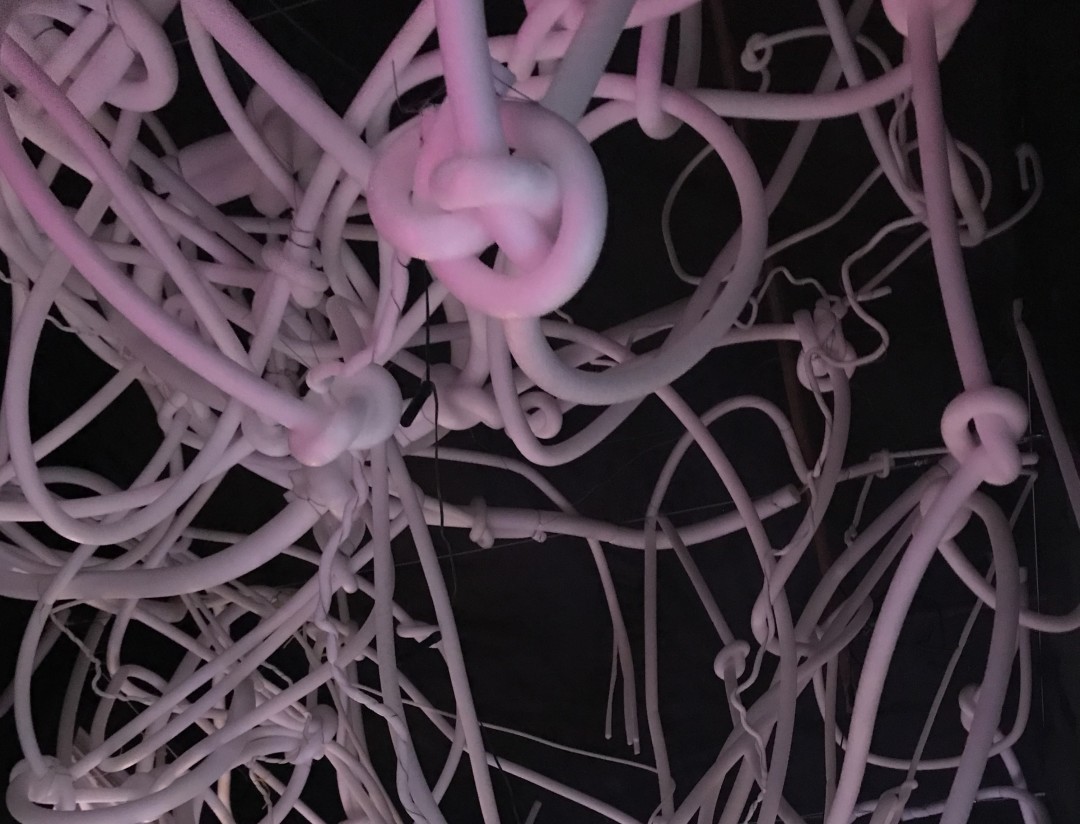 Инсталляция московской художницы Дженды Флюид (Антонины Баевер) была показана на первой выставке в MYTH Gallery «Посмотри наверх, падает небо»