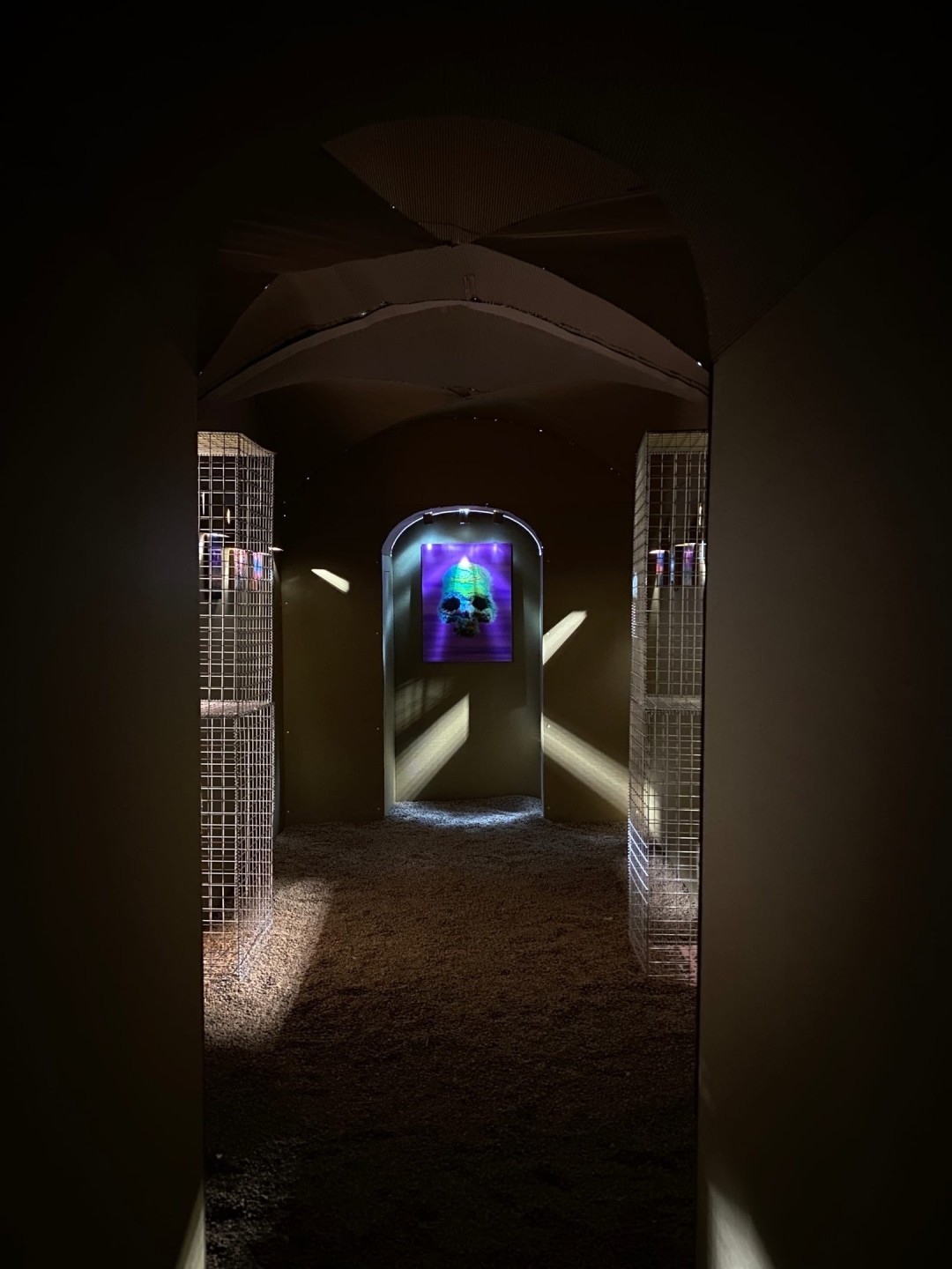 Архитекторка Анна Ильина разработала конструкцию, которая воссоздает своды и ниши катакомбы или средневековой крипты — подземной церкви. Из картона ее собрал Сергей Рублев, его компания делает из этого материала все: от мебели до выставочных пространств. Все работы на выставке существуют в двух форматах: материальном (стерео-варио печать) и в NFT-формате — диджитал версии продаются на криптоарт-маркетплейсах. За счет продажи там мы окупили расходы на производство проекта. «Криптокатакомба» открыта до 1 сентября, билеты продаются тут.