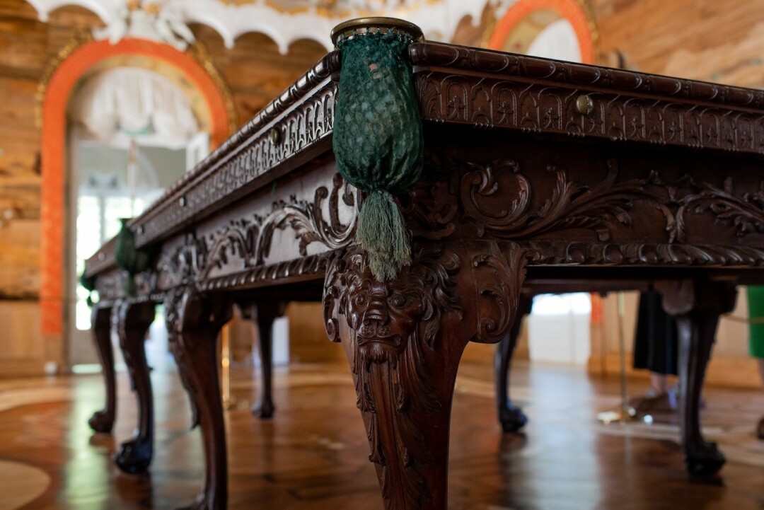Теперь в комнате установлен «аглицкий бильярт» — раритет, самый ранний бильярд на территории России. Он был куплен Петром Федоровичем, который и пристрастил к игре Екатерину. После смерти императора она перевезла стол из Большого Меншиковского дворца и установила в Большом китайском кабинете, который тот покидал лишь ненадолго во время реставрации XIX века. Это предмет удивительной сохранности, даже лузы подлинные.
