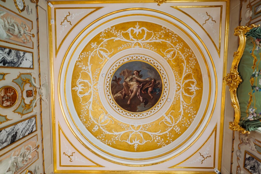 Утраченное (в частности «Отдых Марса» кисти выдающегося живописца венецианской школы Дж. Б. Тьеполо) заменили плафоном Стефано Торелли «День, прогоняющий ночь» из Мраморного дворца.