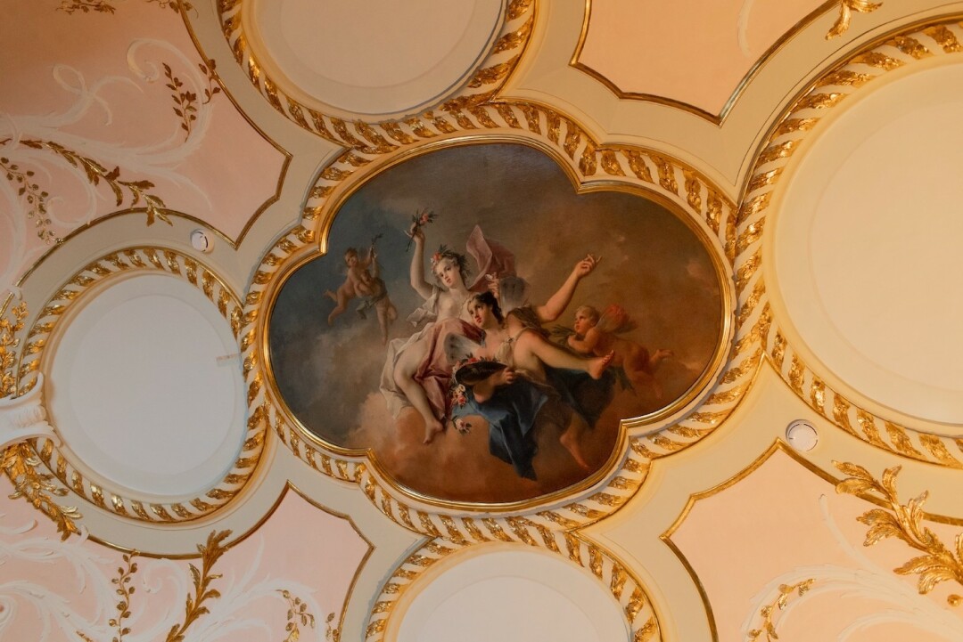 Исключительную ценность представляют живописные плафоны, которые украшают все залы. Аналогичным собранием не располагает ни один из дошедших до нас российских дворцов.