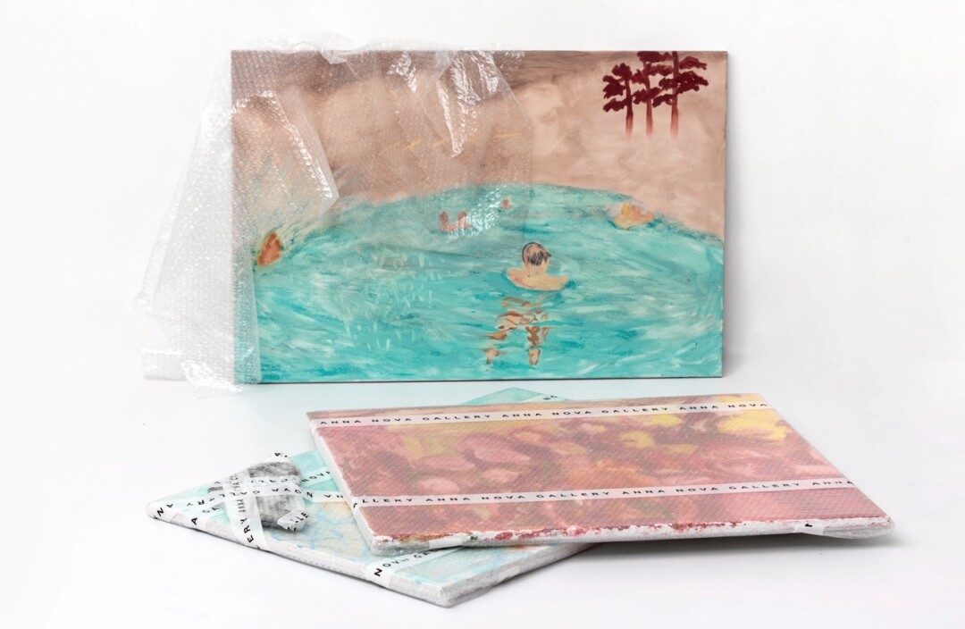Виталик: Конечно, мы еще размышляем про утрату. Про потерю каких-то фрагментов. Например, упакованные работы наполовину скрыты, их нельзя полностью увидеть. Даже перед покупкой. Это такой «кот в мешке». Как прерванные планы или метафора утраты. В истории искусства и культуры вообще часто кто-то что-то утрачивает.