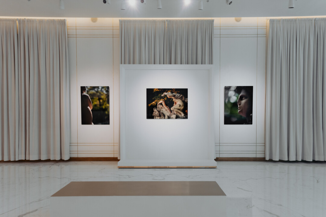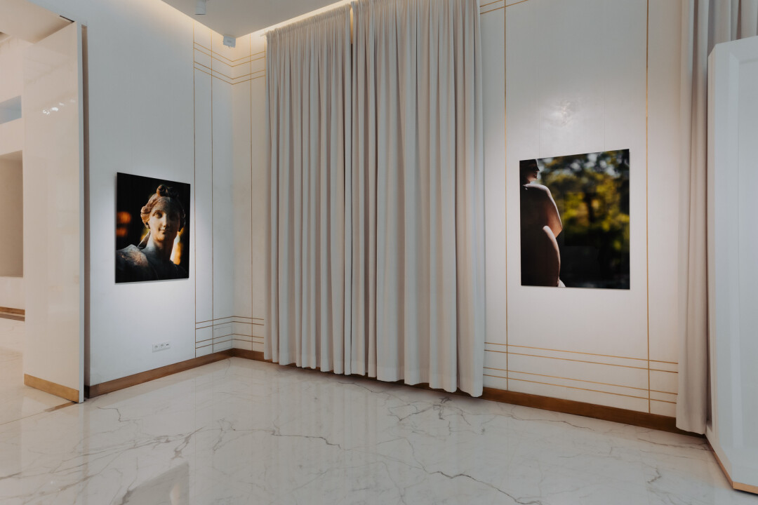 Выставка разделена на две части. Первый зал — «теневое царство» с черно-белыми фотографиями мраморных силуэтов. Во втором зале — буйство света и цветовые контрасты, которые словно переносят смотрящего в мир визуальных иллюзий.
