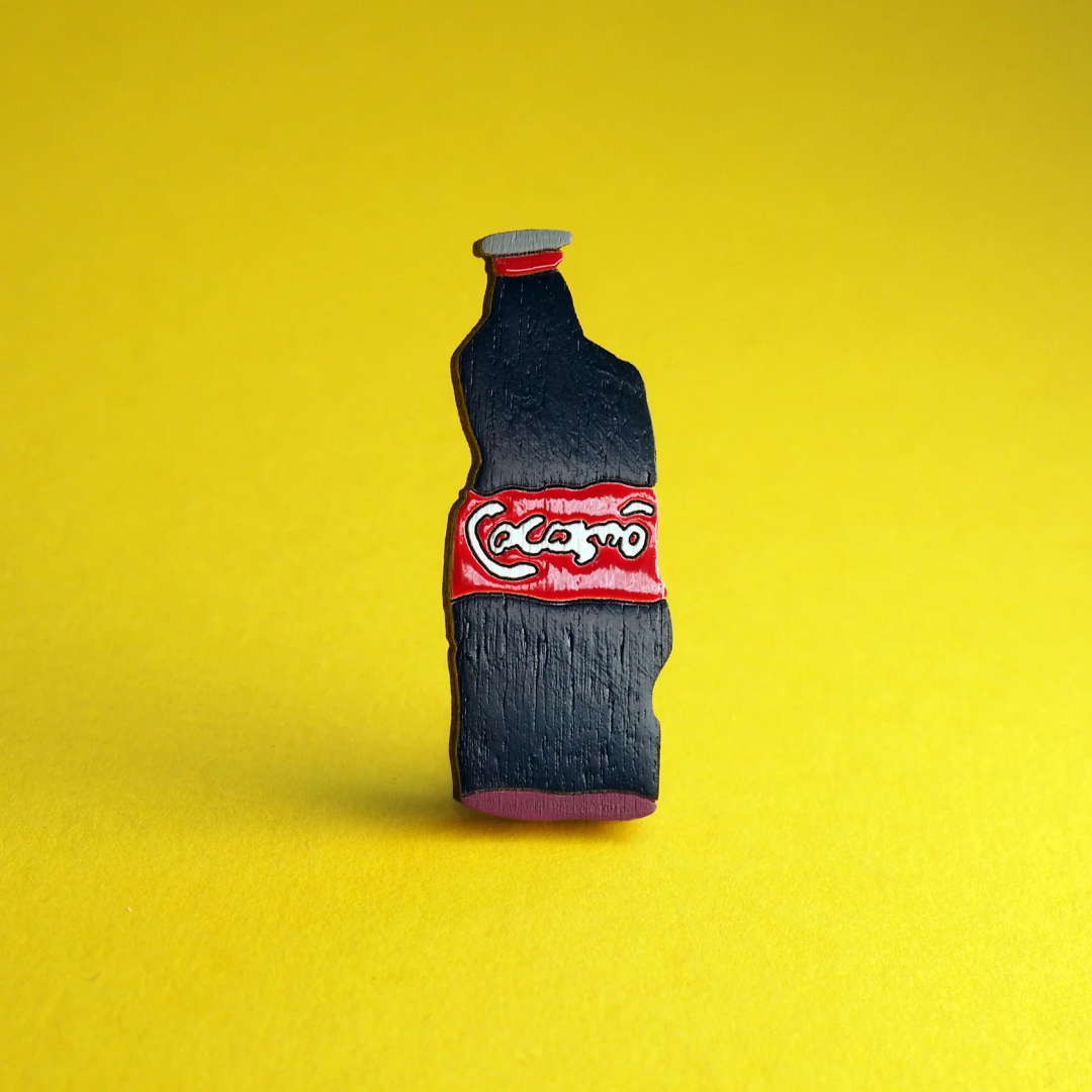 Изогнутая бутылка с почти неразличимым (но все равно узнаваемым!) написанием бренда — часть картины Демьяна Печейко, живописца петербургского объединения «Новые городские художники». И коллаборация арт-группы с «Брошечной им. Билла Трейлора».
