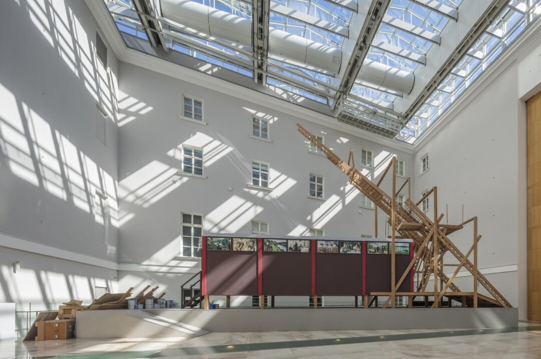 В Главном штабе завершается реставрация масштабной инсталляции и одной из важнейших работ искусства XX века. Илья и Эмилия Кабаковы впервые показали «Красный вагон» в 1991 году в Дюссельдорфе. В Эрмитаже представлена вторая версия работы, которая была создана в 2008 году для большой ретроспективы художников в московском «Гараже», а затем утопия-метафора СССР была передана в дар Государственному Эрмитажу.
