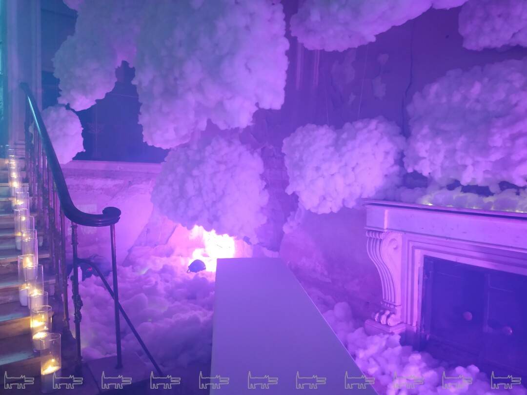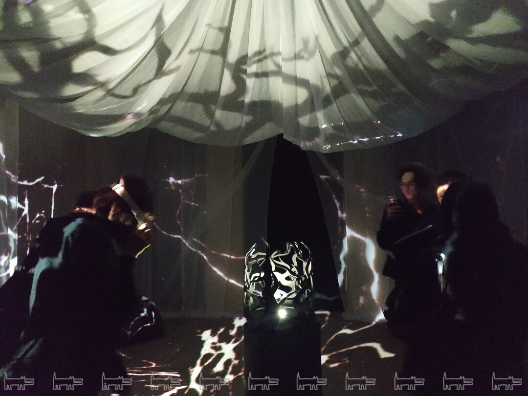 Эта же константа стала основой интерактивной инсталляции «Облачная инверсия» от Tanya Mist, в рамках которой посетитель выставки сам решает какой образ видеть на цифровых панелях — направления песка в небольшой тумбе напротив можно менять с помощью кисти, движения которой дублируются на генеративном изображении. Таким образом, человек непосредственно проецирует свои фантазийные рисунки. Проект дополняет аудиальное сопровождение: «Каждое движение по песку запускает звуковые эффекты на фоне эмбиента».