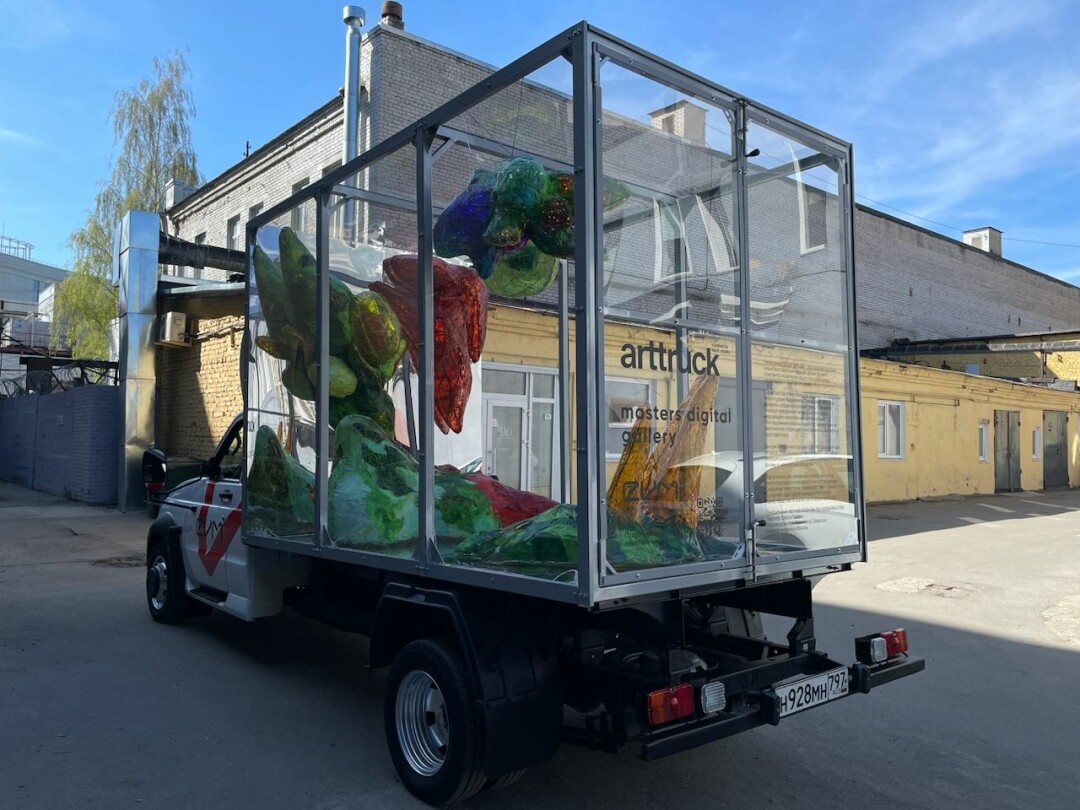 Прозрачный электрогрузомобиль с работами Василиссы Саврасовой будет представлен уже 17 мая в рамках Международного транспортного фестиваля «ТранспортФест» на Манежной площади. Arttruck — это мобильный выставочный медиум внутри городской среды, который обещает способствовать включению искусства в городскую, социальную и культурную сферу. Это новейший формат паблик-арта, доступного для широкой массы людей в открытом пространстве города. В электрогрузовике планируют представить серию выставочных проектов, первый из которых покажет совриск петербургской медиахудожницы и выпускницы Академии имени Штиглица Василиссы Саврасовой.