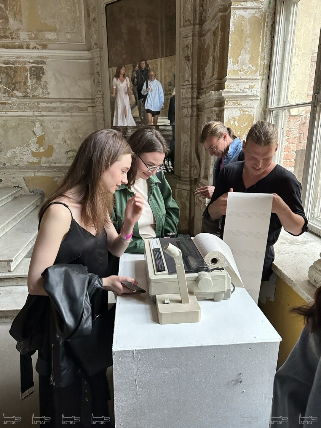 В рамках прямого интерактивного диалога между человеком и машиной представлена инсталляция Print EG-01 от московской мультимедиа-студии Ouroboros. Арт-объект готов не только заменить собеседника, но и ответить на все интересующие вопросы, а то и будущее предсказать. Судьбу, смотрите, высеченной на бумаге через пару секунд! Помимо очевидной развлекательности формата, это — архивация информации: на бесконечном рулоне бумаги раскрываются потаенные мысли, ключевые вопросы и эмоции, которые терзают общество. Среди интересного удалось выяснить, где находится точка G у чата GPT, когда мы все вокруг станем «богачками», а главное — когда же выйдем замуж? В ответ модифицированный принтер с внедренным ИИ выдаёт философские оракулы, которые, если не ответят на вопрос, то точно заставят прорефлексировать. А из бесконечности ответов кураторы сформировали авангардную люстру, которая встречает посетителей в главном холле.