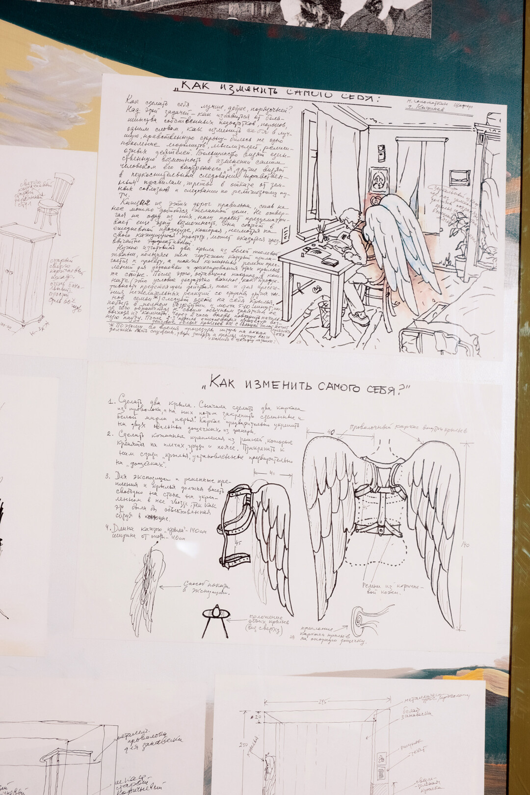 МАРИНА: Наследие Кабаковых действительно очень трудно сохранять. Илья писал в одном из своих текстов, что давно осознал: инсталляции, особенно тотальные, даже в музее рискуют не сохраниться для вечности и не попадут в будущее. В последние годы он вернулся к занятиям живописью. Каждая ваша инсталляция снабжена многостраничной инструкцией и подробными чертежами. Однако в них мало говорится о типах материалов, размерах и колерах, а в основном — о впечатлениях, ощущениях, эмоциях, которые пространство инсталляции должно вызывать у зрителя. И все же это очень субъективно и трудно воспроизводимо. Удалось ли вам к настоящему моменту выработать какую‑то универсальную форму хранения и передачи музеям и коллекционерам этого знания?
