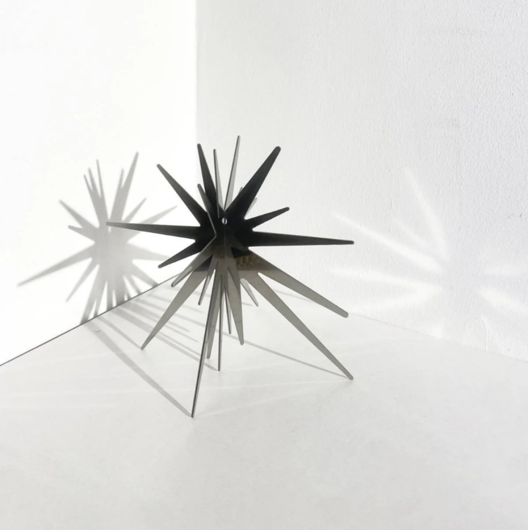 Название выставки в гостиной Masters на Левашовском Хлебозаводе «Это не то, чем кажется» можно сделать слоганом примерно каждого Нового года. Стальные объекты, выпущенные лимитированным тиражом в 25 экземпляров, напоминают о традиции детства вырезать из бумаги снежинки и обклеивать узорами морозные окна. Но теперь плоскостные образы стали объемными, превратившись в быструю инъекцию ностальгии, а также в напоминание о том, что смысл вещей может быть глубже, чем мы привыкли думать.