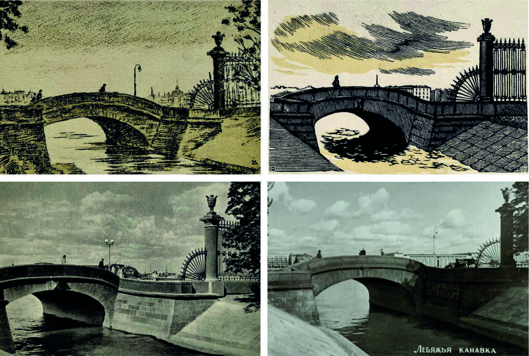 «Ленинградский канон» стартует 21 мая и проследит развитие одного и того же городского сюжета от типового пейзажа до каноничной панорамы — Лебяжьей канавки с одинокой фигурой на мосту — от 1926 года (оригинала Владимира Преснякова) до хрущевской оттепели. Среди работ литография Владимира Успенского, фотоснимок Михаила Величко, ксилография Марии Орловой‑Мочаловой и сувенирные вариации на тему.