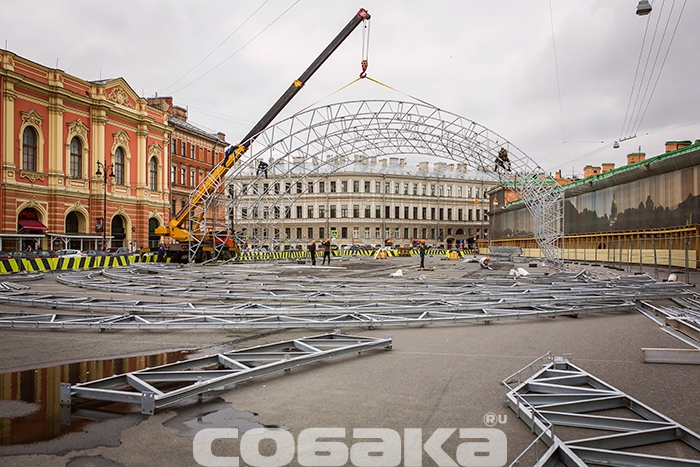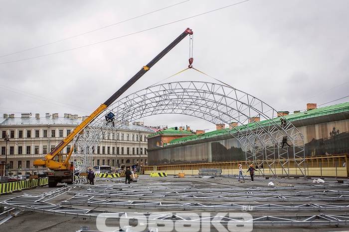 Передвижная экспозиция Van Gogh Alive («Ван Гог. Ожившие полотна») исколесила полсвета прежде чем приехать в Петербург. Специально для 3000 динамических картин на Конюшенной площади монтируют вместительный павильон. Мы посмотрели, как организаторы готовят одну из самых ожидаемых выставок лета.