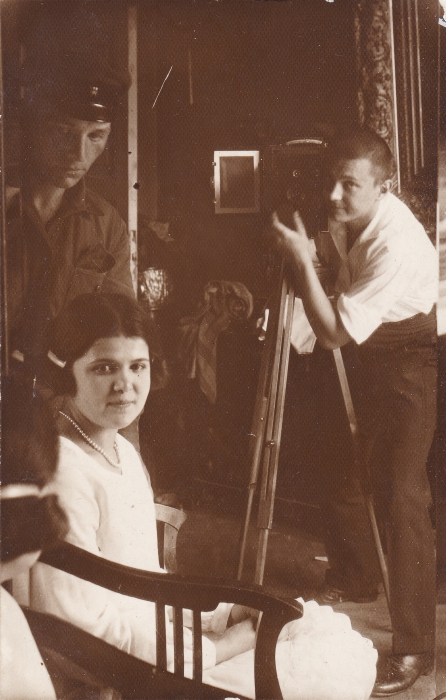 На выставку дедушкины фотоработы взяли из коллекции коллекционера Артёма Классена, он признается, что с первого взгляда эти работы произвели на него сильнейшее впечатление. В каждом кадре чувствовалось дыхание эпохи, потрясающая экспрессия, и ещё, как мне теперь хорошо понятно – невероятный оптимизм молодых, красивых, талантливых людей, которым казалось, что все надежды и планы обязательно сбудутся. На многих кадрах – автопортреты, на которых дед предстает в разных образах: суровым пролетарием, эксцентричным аристократом или подгулявшим кутилой.
