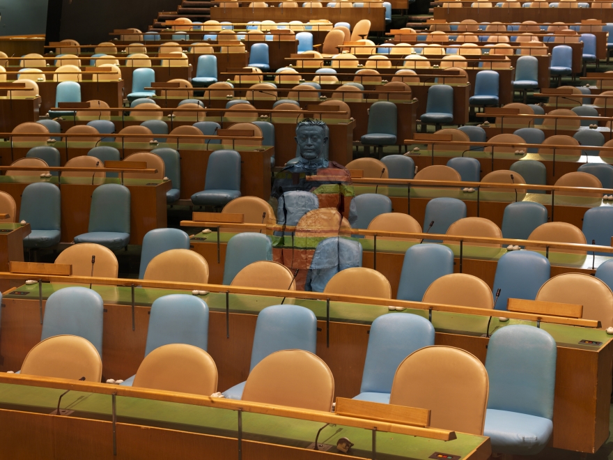 Чаще всего художник подбирает фон для работы так, чтобы что-то рассказать об актуальных проблемах общества. Среди его проектов – «Глобальные цели», сделанный по заказу ООН. В нем он растворялся во флагах 193 стран.