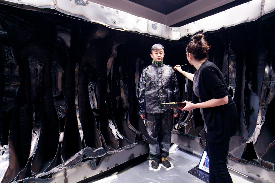 В Эрарте сегодня, 17 февраля, стартует экспозиция Лю Болина, прозванного художником-невидимкой. В каждой своей работе он сливается с окружающей средой, совмещая техники перфоманса и фото. В петербургском музее он также «спрятался» в работе «След червя», разрисовал добровольцев, в том числе блогера Елену Шейдлину, и рассказал нам о своем творческом методе.