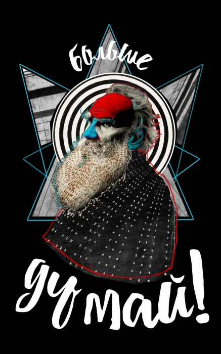 «Борода Толстого» — один из наших любимых проектов. Полтора года мы каждый день выкладывали в Сеть два коллажа: портрет Льва Толстого и плакат с его сентенциями. За время проекта мы сделали больше 1000 картинок, прочесали 90 томов его сочинений, написали о лучших опусах несколько текстов и создали капсульную коллекцию футболок с питерским магазином Freelabel (их можно купить в Новой Голландии).