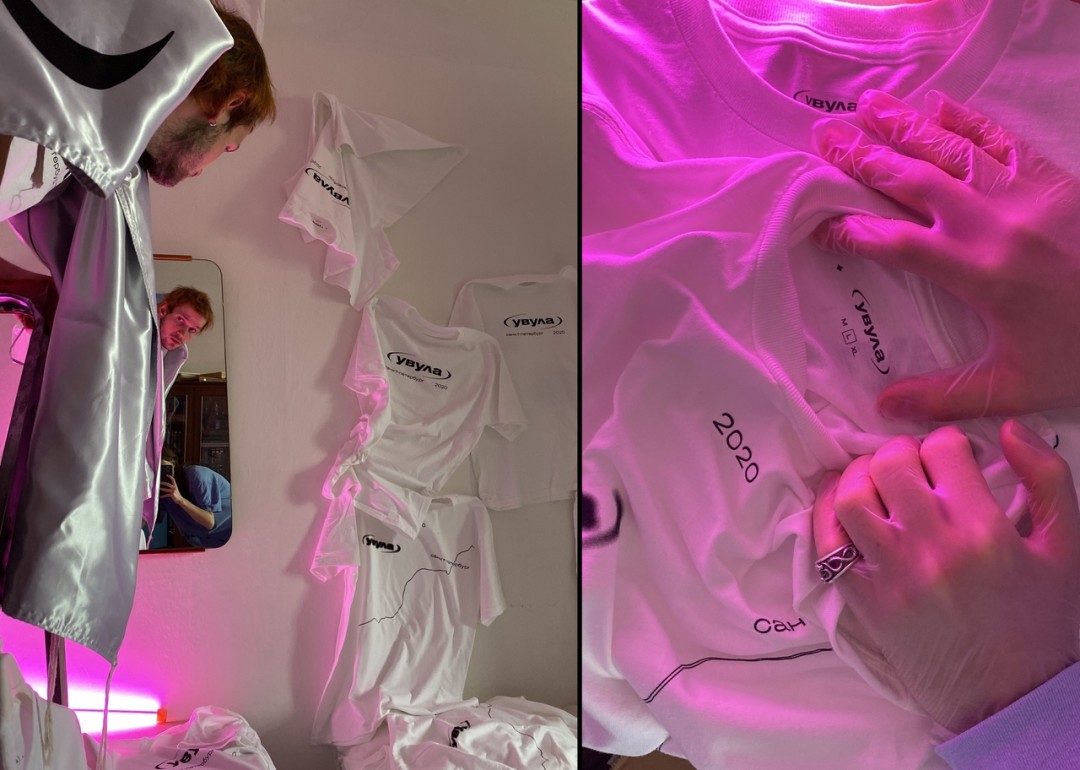 Продавать мерч для нас — способ выживания. Человек приобретает его сознательно, по необходимости, чтобы подарить себе эмоцию. Пластинки можно слушать, в вещах спать, беситься и гулять, а когда ты посмотришься в зеркало, будешь с теплом вспоминать об этом. Первый винил «Увулы» я развозил по Москве самостоятельно, мне не сложно поработать курьером. И это забавно — не все сразу понимают, что я не просто работник курьерской службы. Такая работа группы в кризисное время честна, помогает оставаться на плаву самим и радовать других.