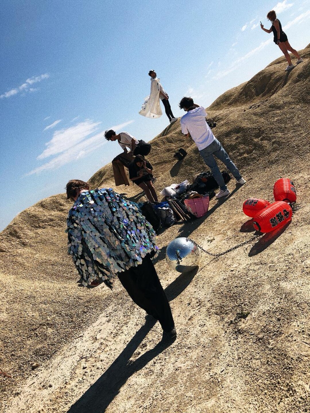 Вы, наверное, знаете нашу главную фишку, мы умеем снимать на коленке (ахахаха)! Хотя при этом мы собрали внушительную команду: реквизитора, стилиста, оператора, много хэлперов, даже визажист, кажется, был. И поехали в жаркий день классно провести время. В итоге две полные рабочие смены часов по 10-12, неоднократные запуски дрона, верблюды, которые каким-то чертом оказались в нужный момент съемок, и, конечно, большое количество импровизации.