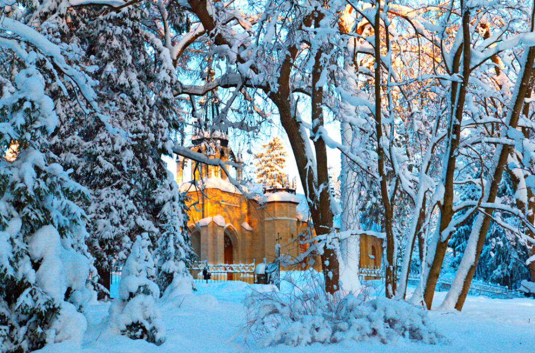 Отправляйтесь на лыжах в живописный парк в черте города с видом на Елагиноостровский дворец, построенный архитектором Карлом Росси (ныне является музеем — Прим. ред.). Спортивный инвентарь с собой брать необязательно — здесь работает прокат возле кафе «Нота». На территории можно встретить не только ручных белок, но и птиц. Есть бесплатный мини-зоопарк в части «Роща». Среди его обитателей — ворон, куры, гуси, фазаны, камерунские козы, фазаны, северный олень и другие. Есть каток и аренда тюбинга и финских саней.