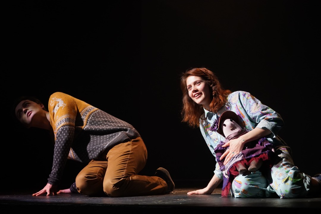 Для спектакля на сцене МДТ художник-постановщик Эмиль Капелюш придумал минималистичную, но очень изобретательную сценографию. Под колосниками повесил три пары деревянных балок, схематично обозначающих дом, где живет двенадцатитилетний Паша (Ярослав Дяченко) с девятилетней сестрой Гуль (Дарья Ленда) и бабушкой Шурой (Наталья Акимова). По ходу действия балки превратятся в крылья гигантской птицы, за которые будут цепляться дети, в рождественскую елку, в крышу приюта. Функции многих предметов здесь расширяются и могут меняться. Например, швейная машинка, за которой много лет работала Шура, во второй части спектакля «исполнит» роль пианино. В постановке полно таких вроде бы простых, но вместе с тем замечательных придумок: раздолье для воображения как детей, так и взрослых. Фантазией Гуль оживает кукла Лялька (великолепная Мария Никифорова) и до поры до времени остальные замечают лишь тряпичную фигурку. В финале же, когда Лялька спасет маленькую хозяйку, ее увидят и услышат все герои. Еще один обитатель, показывающийся далеко не каждому – домовой Аристарх Модестович (Михаил Самочко). С его появления спектакль-то и начинается. А вместе с ним и обещанное волшебство. Он может вытащить книгу из стопки порядком запылившихся фолиантов, но она не развалится. Может оставаться невидимым, когда захочет. Знает всю историю дома, начавшуюся задолго до того, как здесь появились Паша, Гуль и даже их мама, и рассказывает ее.