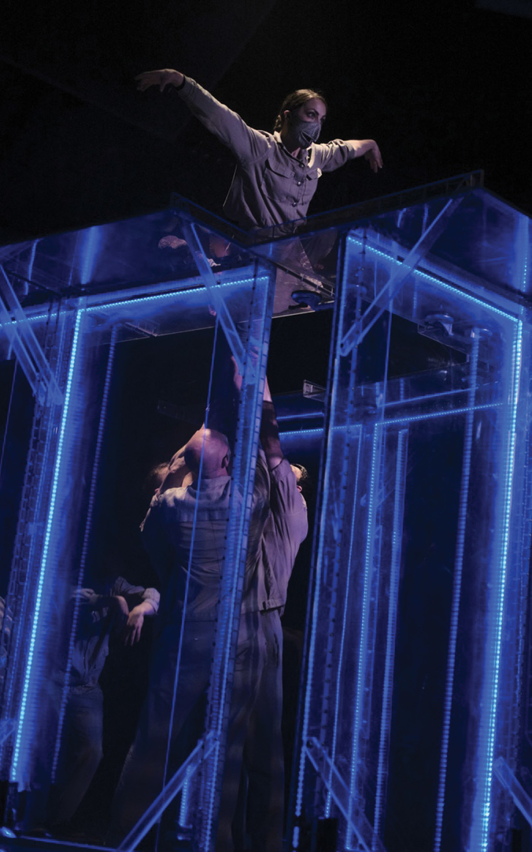 Новый спектакль «Упсала-Цирка» впервые за всю историю проекта заходит на территорию документального театра. Пользуясь все теми же приемами акробатики и танца контемпорари, команда отстраняется от привычного для себя фантазийного мира. Сюжет «Перьев» построен вокруг детских воспоминаний артистов, а шире — травм России XX века. Личное, от коммуналок и лета в деревне до дворов-колодцев и гаражей, здесь встраивается в исторический контекст. Зритель вместе с труппой проживает потрясения страны и знакомство со своими корнями: ГУЛАГ сменяется сенокосом, поезд в ссылку — хороводом кумушек, мужицкие пьянки — ритуалами староверов. Соединяясь со своими воспоминаниями, в конце спектакля герои получат освобождение: в финальной сцене они танцуют под музыку культового «АукцЫона», обливаясь водой из жестяных ведер. Сценография спектакля не менее эмоциональная, чем его идея. Главная декорация — конструкции из мутного оргстекла от художника Николая Хамова, работающего с физическими театрами AXE и DEREVO. Его модули издают раздражающий скрип и все время двигаются: они становятся то кроватями в общежитии, то нарами в тюрьме, то полупрозрачной стеной. Визуальный фон «Перьям» создал видеомэппинг из фотографий труппы и фотоархивов с лицами предков. Но самым важным было запустить в артистах процесс осознания своих корней. Для этого режиссер и сооснователь цирка Лариса Афанасьева отправилась с командой к антропологам — в Пропповский центр, где изучают культурное и социальное наследие страны и то, как оно трансформируется сегодня.