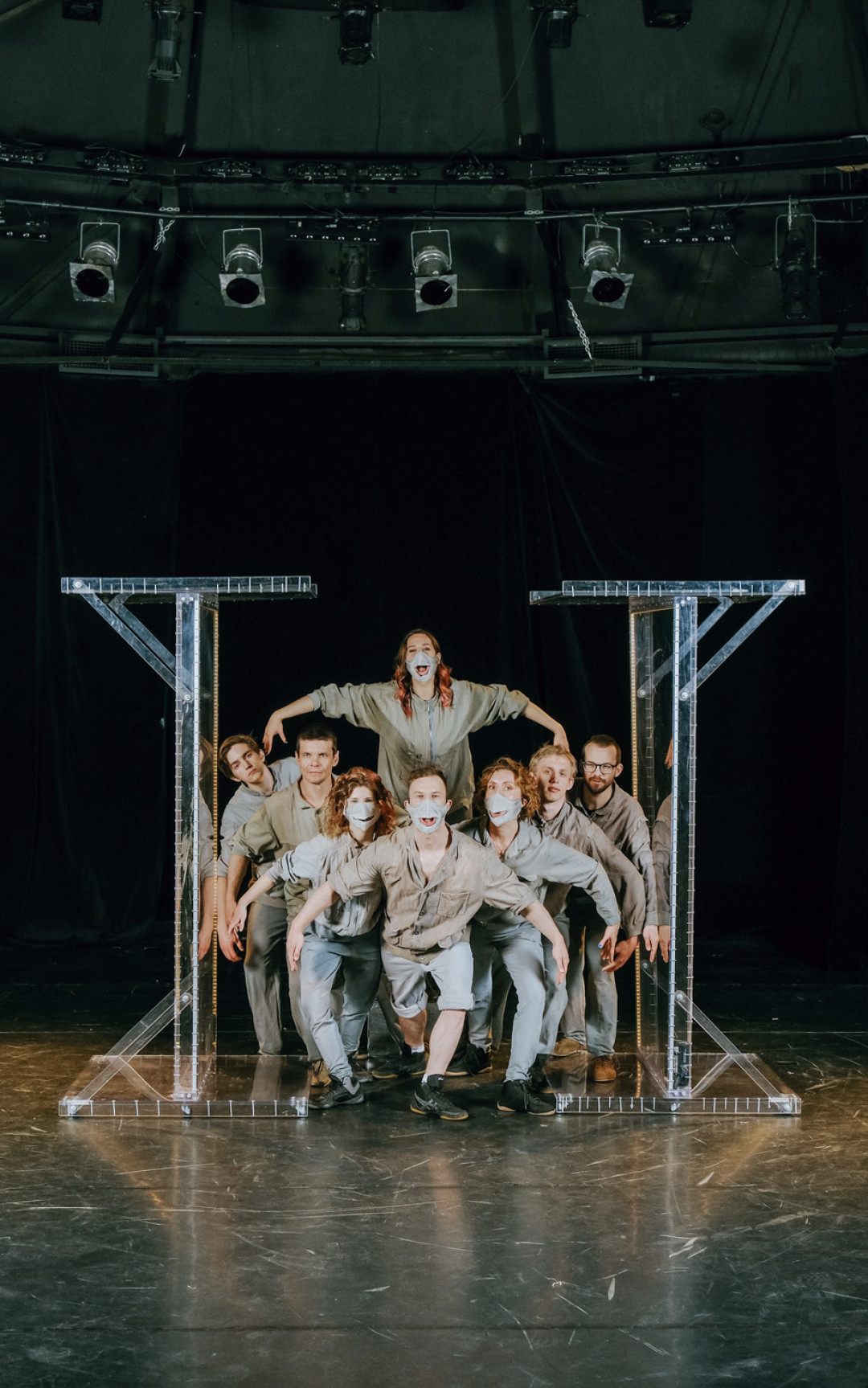 Я.М.: Один из главных столпов цирка — это доверие к партнеру и к команде, потому что мы все время работаем в зоне риска. Через трюки и акробатику мы как раз показываем эту сторону человечности, которая особо остро ощущается на сцене и в зале, на фоне зачастую мрачной телесности «Перьев». А еще наше искусство развивает чувствительность к тому, кто рядом: без поддержки — физической и моральной — ни одного прыжка на подкидной доске не выйдет. Когда ты ответственен за жизнь человека рядом, тебя это меняет.