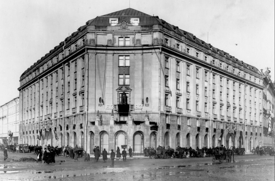 Здание в стиле модерн построено архитектором Федором Лидвалем на средства американских миллионеров братьев Асторов, инвестировавших в несколько гостиниц своего имени по всему миру. Один из них — Джон Астор — не дожил до открытия петербургской «Астории» в 1912 году. Незадолго до этого он погиб во время крушения «Титаника».