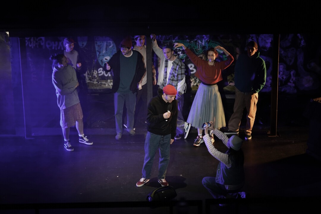 Для своей второй постановки в Малом драматическом Яна Тумина выбрала повесть Булата Окуджавы «Будь здоров, школяр». Писатель рассказал здесь не только свою историю, но и сотен тысяч таких же ребят, уходивших на Великую Отечественную войну сразу после школы и погибавших в первых же боях. А излагает этот сюжет режиссер современными визуальными средствами. Например, используя граффити.