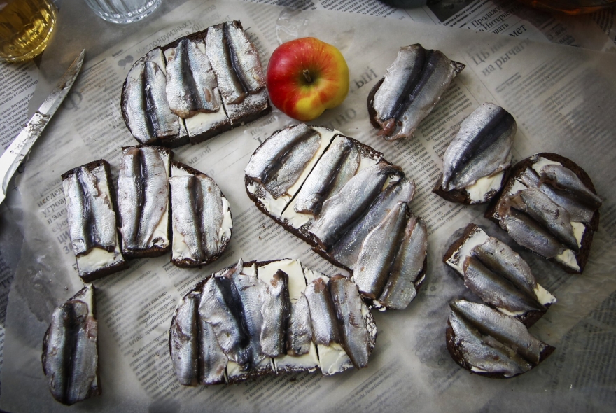 Фуршет на газете в заключении иммерсивного спектакля "Хранитель"