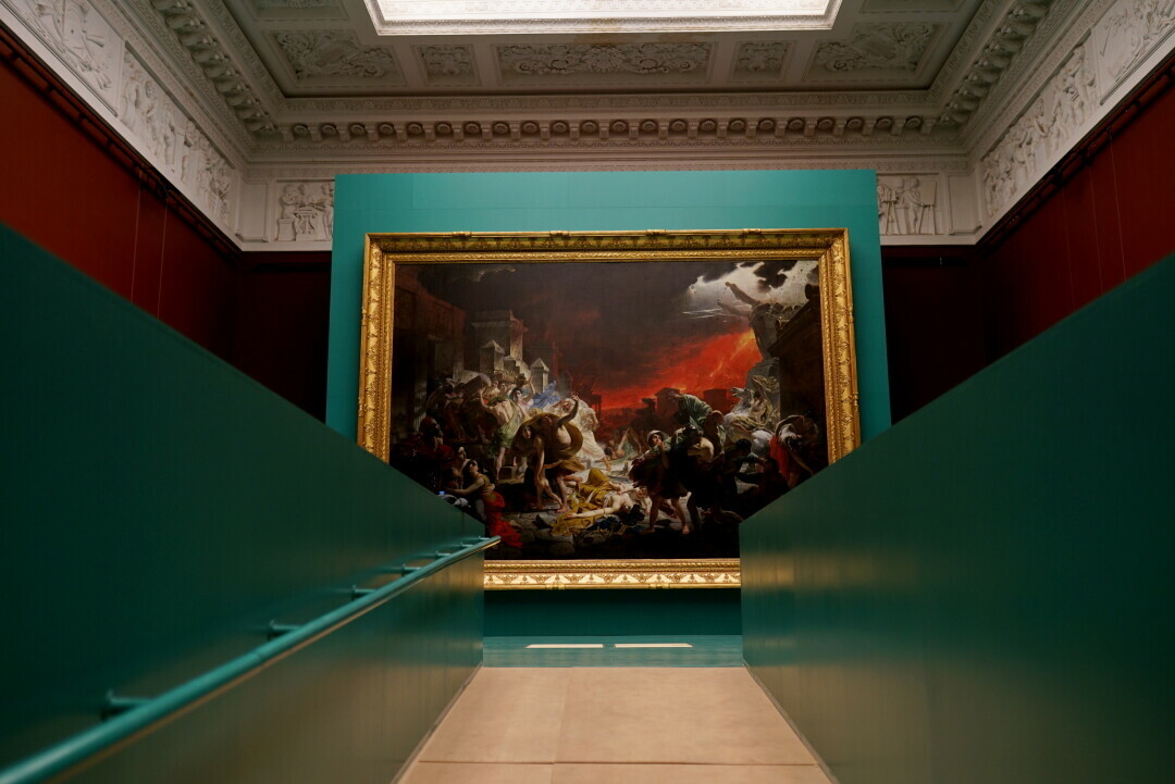 Экспозиция-блокбастер включает более 400 экспонатов. Среди них — картина-сенсация, ранее не показываемая широкой публике, «Христос во гробе» (долгое время она хранилась в Русском музее как вещдок по уголовному делу), а также легендарная «Последний день Помпеи» — ее больше полугода реставрировали на глазах у посетителей корпуса Бенуа. Подробнее о выставке можно прочитать тут.