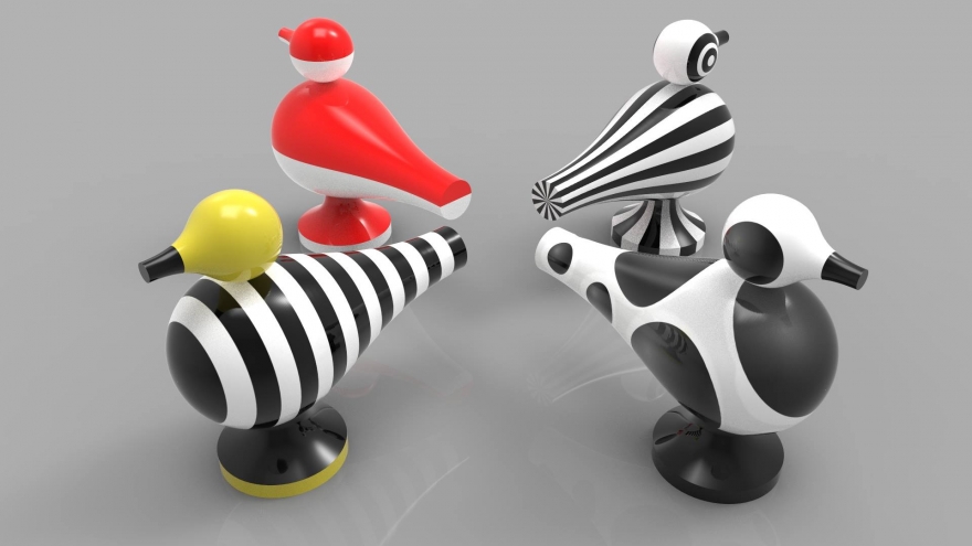 Это новый проект художника, реализованный в пространстве виртуальной галереи kzgallery.com. В нем рассматриваемой суперформой становится обычная птичка-свистулька из арсенала «народных промыслов». Птица привлекла Люблинского своей лаконичностью и минималистской простотой, которая обретает вариативность при разных окрасках. В виртуальной галерее птички-свистульки предстают уже как настоящие монументы.