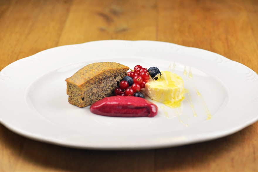 - Маковый пирог с медовым парфе и граппой (Tortino ai semi di Papavero, Parfait al miele)